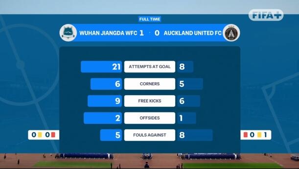 武汉车谷江大女足vs奥克兰联全场数据:射门比21-8 越位比2-1
