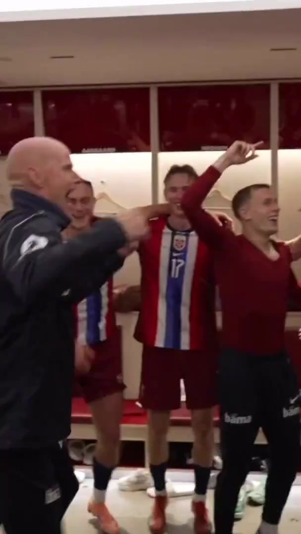 10月13日讯 挪威5-0大捷以色列后,距离进犯宇宙杯只剩一步之遥,赛后挪威主帅索尔巴肯讲授了厄德高在更衣室坐着庆祝的画面。
