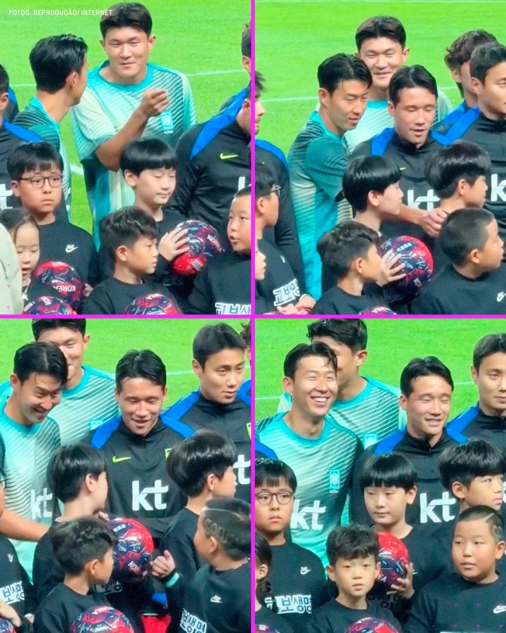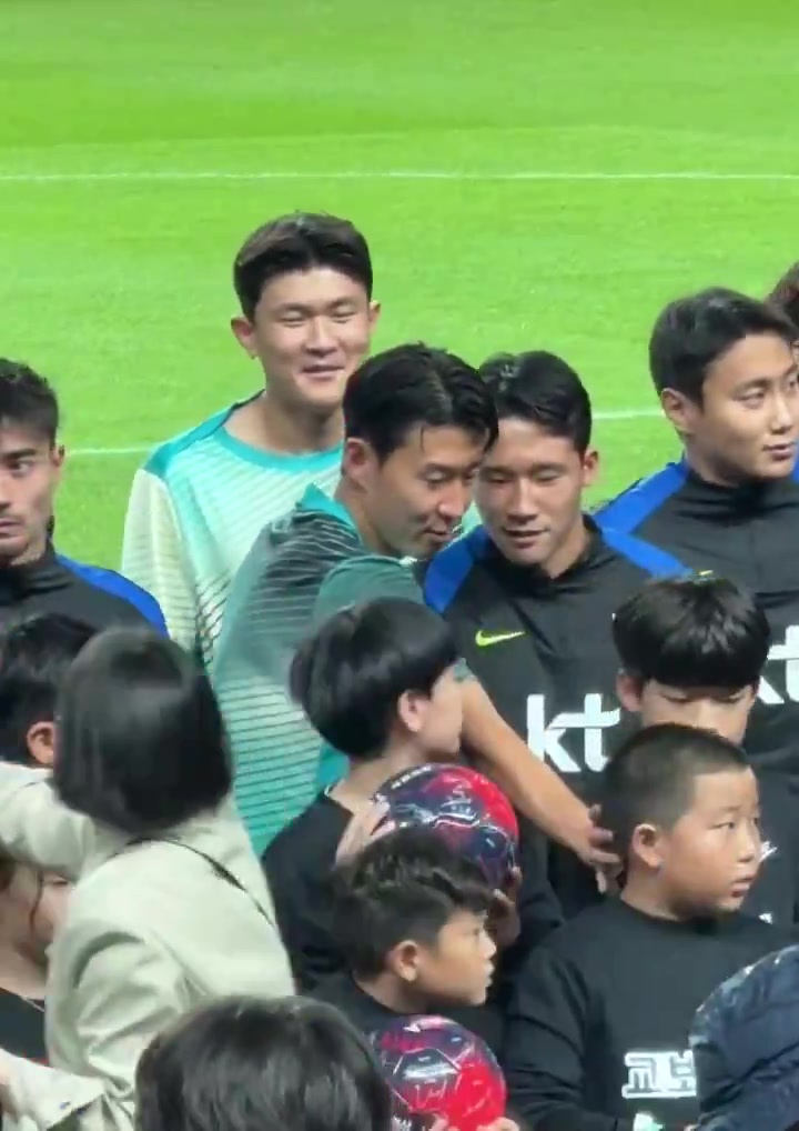可人😋对阵巴拉圭合影设施,孙兴慜与SONNY发型的小球迷打呼唤