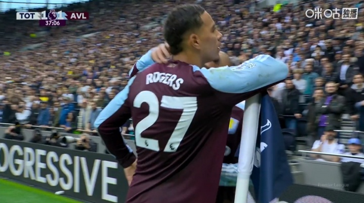 这球漂亮!罗杰斯禁区外轰出落叶球寰宇波,维拉1-1扳平热刺!