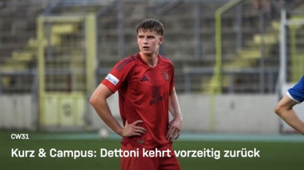 官方:拜仁提前调回外租于草蜢的后卫德托尼,球员将精良二队