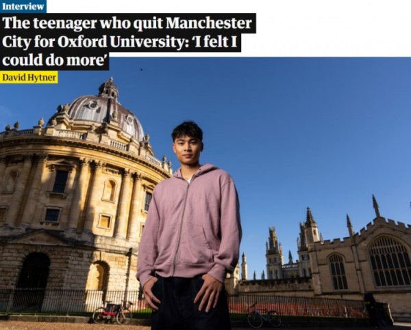 卫报:失当球星要当学术明星,曼城19岁青训小将被牛津大学选取