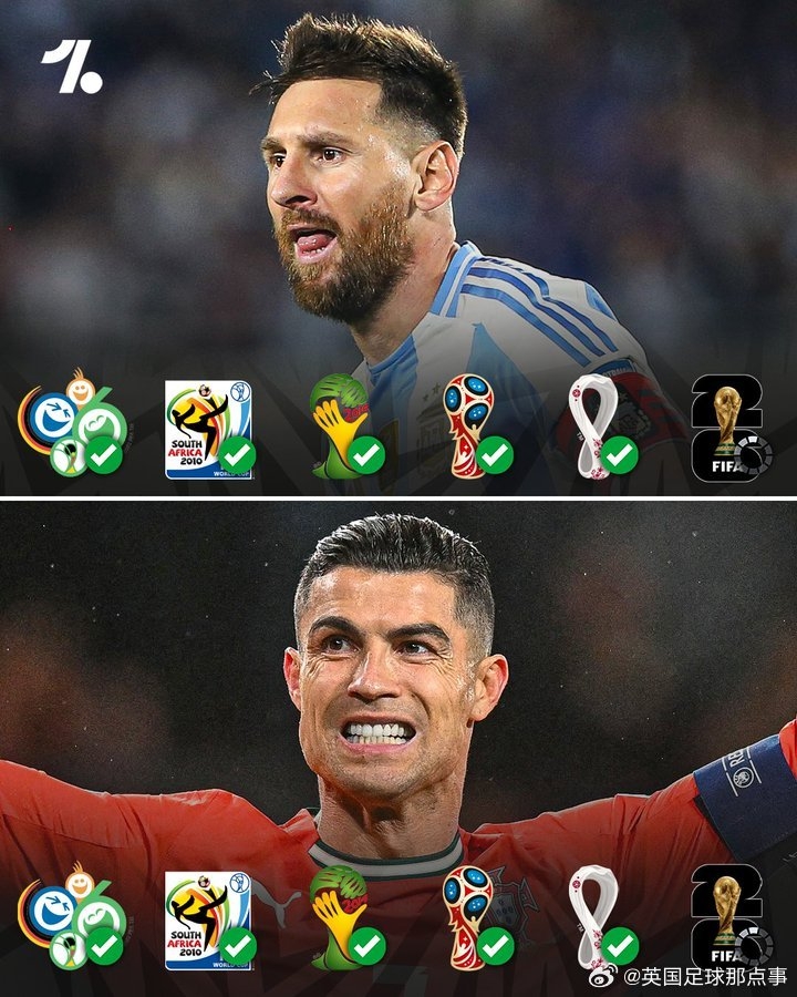 若是梅西和C罗王人能出战2026年天下杯,他们将共同创造历史,成为史上首批六次干涉天下杯的球员🤩🔥