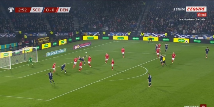当今苏格兰1-0丹麦,以此比分苏格兰将纵贯宇宙杯!