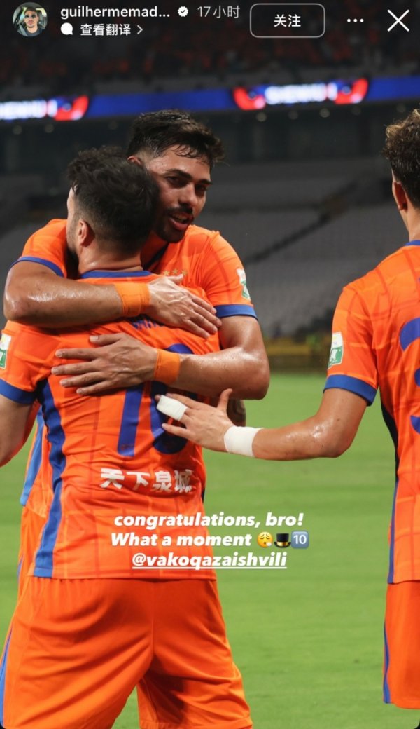 9月13日讯 中超第24轮焦点战,山东泰山客场3-3战平上海申花。 泰山外助瓦科-卡扎伊什维利孝顺超神发挥,联接7场比赛破门的同期,连场献技帽子戏法,近2场比赛打进7球。上轮泰山6-0国安的比赛中,卡扎伊什维利4射1传。 泰山外助马德鲁加赛后更新社媒,晒出与卡扎的拥抱照并配文祝福他的发挥:“祝福你,伯仲!何等精彩的发挥!@卡扎伊什维利”......查看更多