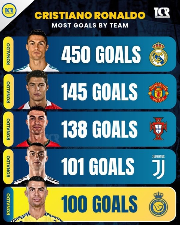 💫代表5队打入100球+!C罗939球永别:皇马工夫438场450球🤯