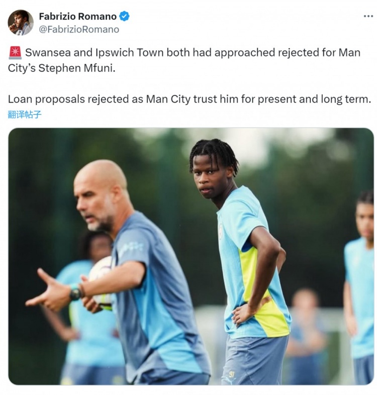 罗马诺透露,斯旺西、伊普斯维奇就租赁姆富尼与曼城研讨,但两家俱乐部的租赁提倡齐被曼城拒却,曼城对姆富尼咫尺和异日的发展齐充满信心。