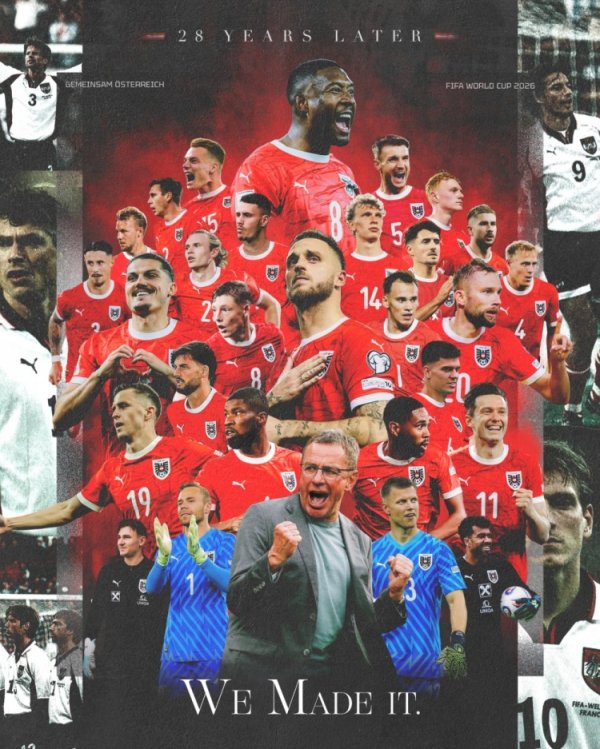 恭喜!奥地利时隔28年重返寰宇杯,足协官方社媒晒海报庆祝