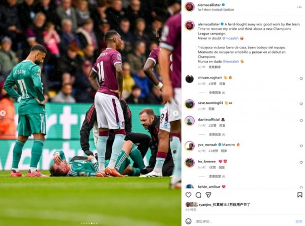 麦卡利斯特社媒:现时要让脚踝尽快复原,耐久别怀疑萨拉赫
