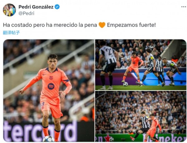 众人推崇!佩德里社媒:经过很深奥但一切皆值得,咱们强势开局