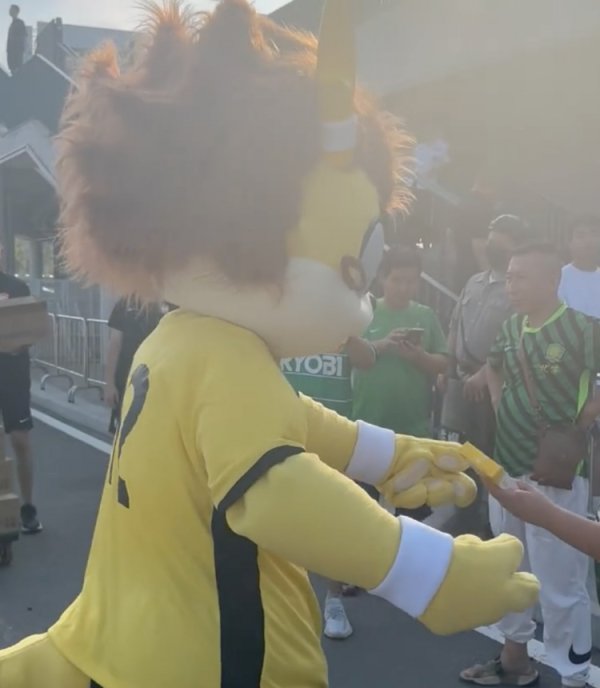 其乐融融!青岛西海岸祯祥物赛前为国安远征球迷奉上雪糕