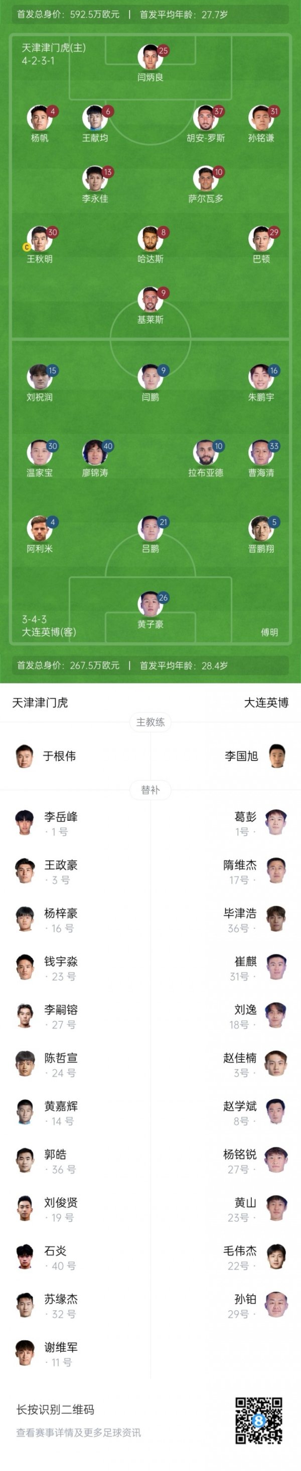 08月16日讯 北京本领本日18点30,中超第21轮,天津津门虎vs大连英博,赛前首发威望出炉。 天津津门虎首发:25-闫炳良、4-杨帆、6-王献均、31-孙铭谦、37-胡安-罗斯(F)、8-哈达斯(F)、10-萨尔瓦多(F)、13-李永佳、29-巴顿、30-王秋明、9-基莱斯(F) 天津津门虎替补:1-李岳峰、3-王政豪、11-谢维军、14-黄嘉辉、16-杨梓豪、19-刘俊贤、23-钱宇淼、24-陈哲宣、27-李嗣镕、32-苏缘杰、36-郭皓、40-石炎 大连英博首发:26......查看更多