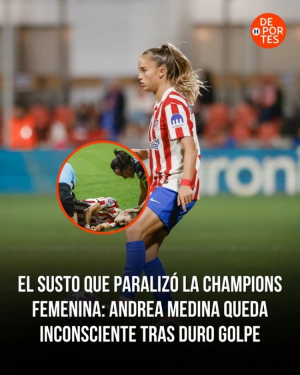 马竞女足球员梅迪纳头部被膝盖撞击一度失去意志,当今已脱离危急