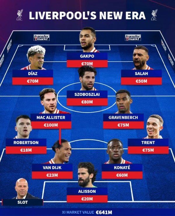 9月7日讯 利物浦在今夏一掷令嫒,引进了多位强援,《转会市集》也对比了利物浦在夏窗开启前后的主力阵变化情况。 夏窗开启前:总身价6.41亿 时尚:迪亚斯(7000万,转会拜仁)、加克波(7000万)、萨拉赫(5000万) 中场:麦卡利斯特(1亿)、索博斯洛伊(8000万)、赫拉芬贝赫(7500万) 后卫:罗伯逊(1800万)、范迪克(2300万)、科纳特(6000万)、阿诺德(7500万,转会皇马) 门将:阿利森(2000万) 夏窗关闭后:总身价7.63亿 时尚:埃基蒂克(7......查看更多